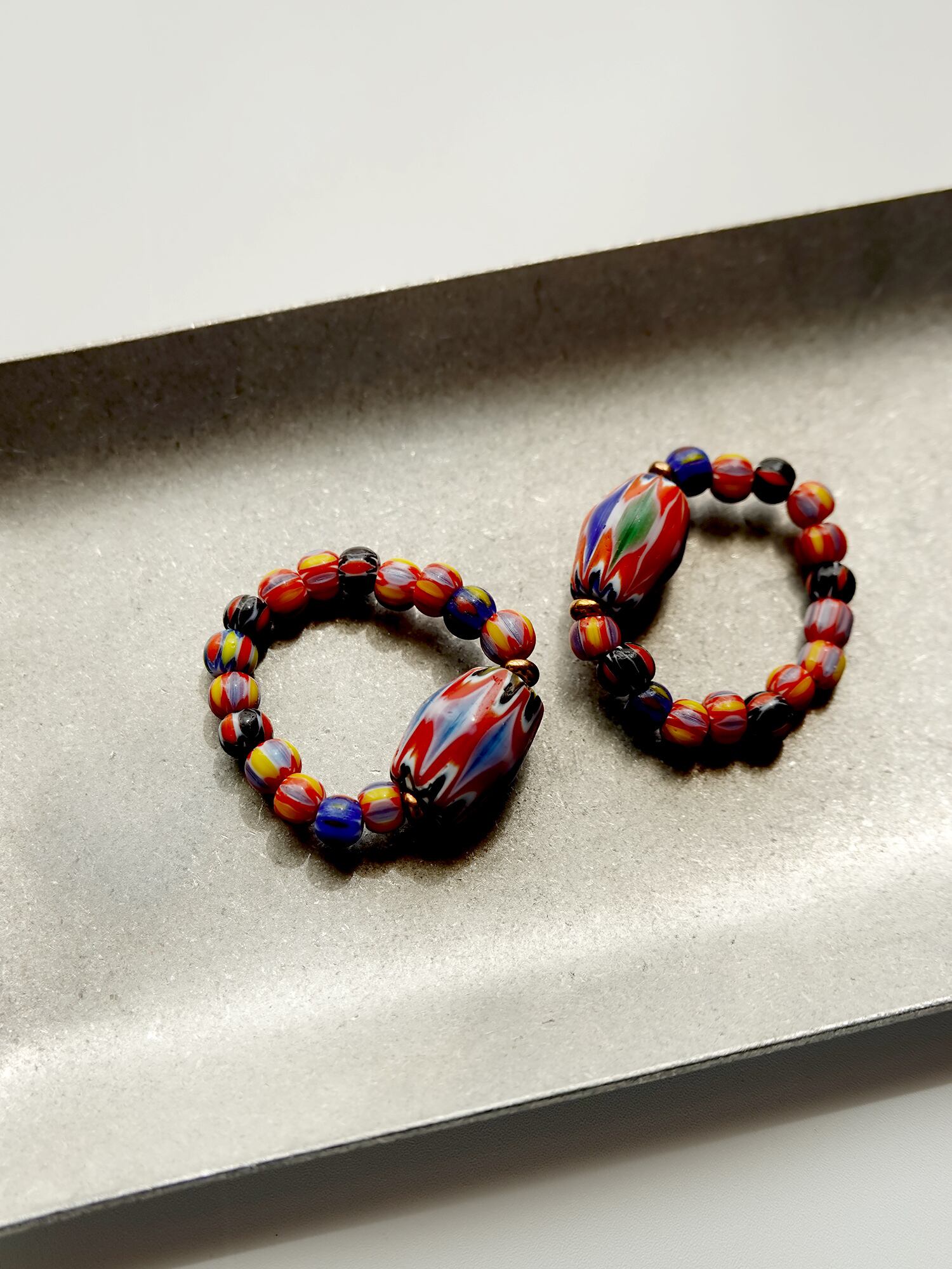 J005シェブロンビーズ 個性的なリング とんぼ玉 アクセサリー