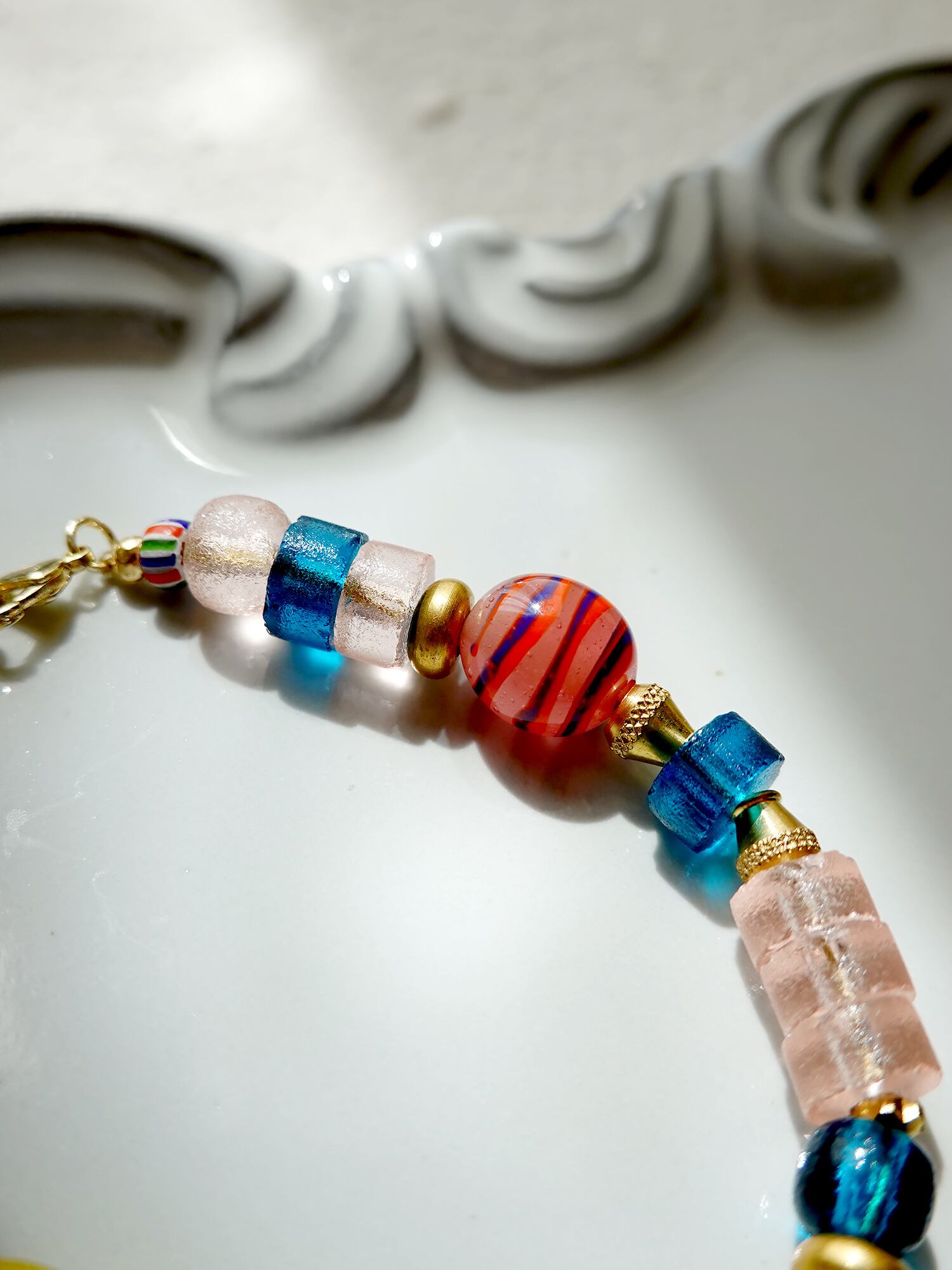 S039 とんぼ玉 ガラスビーズ 真鍮 花 カラフルなブレスレット 一点物 ハンドメイドアクセサリー