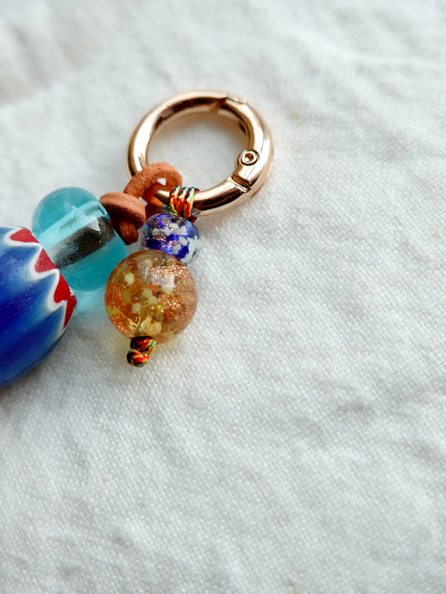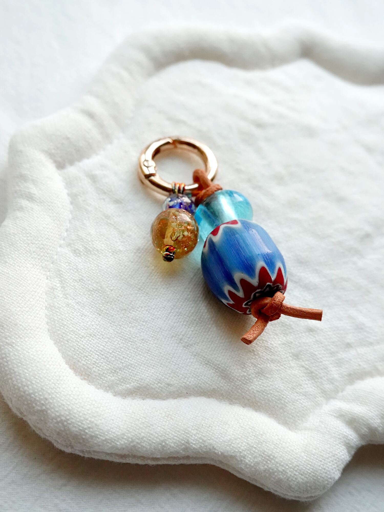 G024-3 とんぼ玉 シェフロン 蓄光ガラスビーズ バッグチャーム キーホルダー