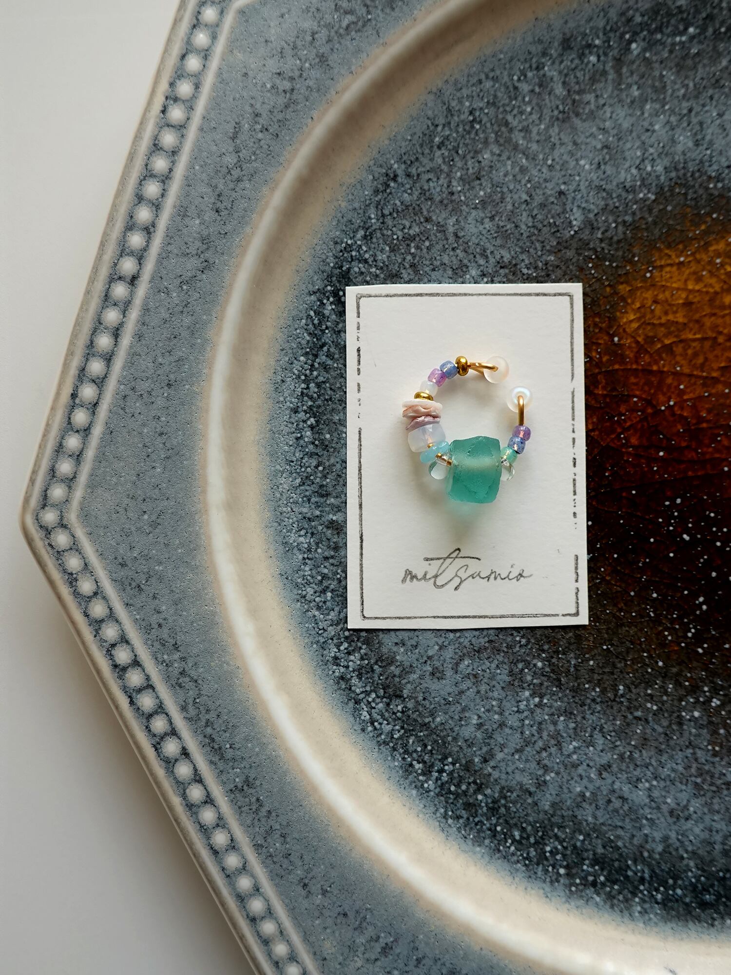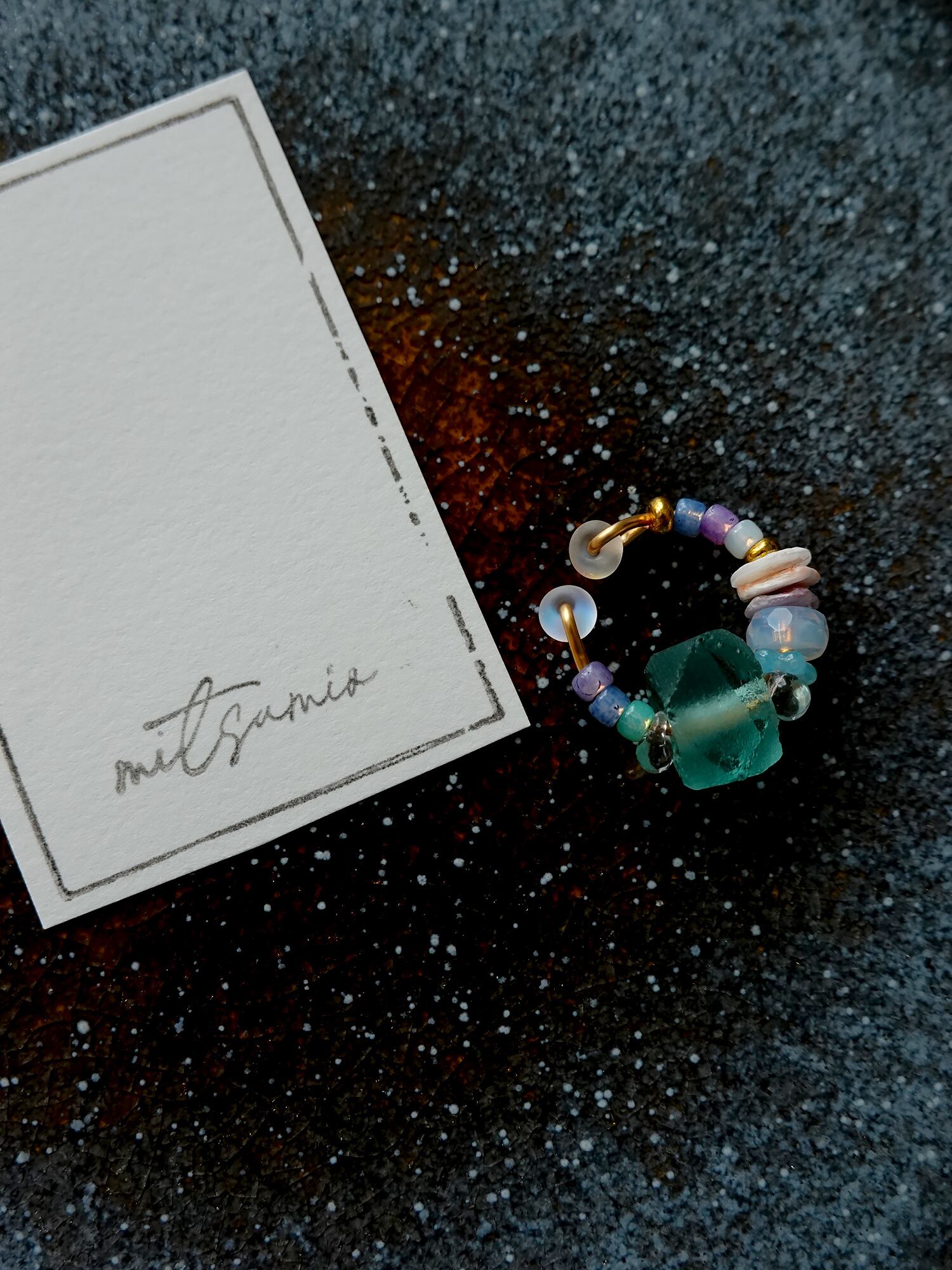 E052-2 イヤーカフ 八稜ビーズ 真鍮ワイヤー とんぼ玉 片耳